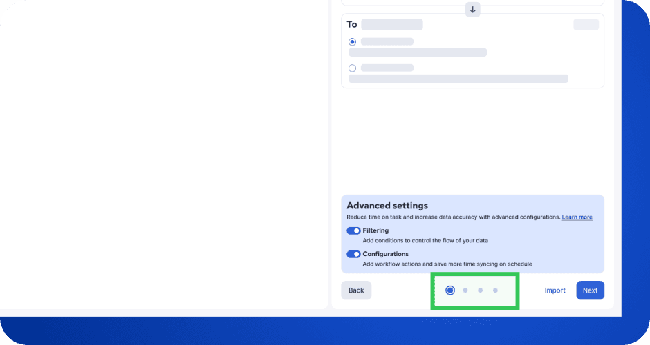 Reduced to 2-5 steps for both import/export + scheduled workflow