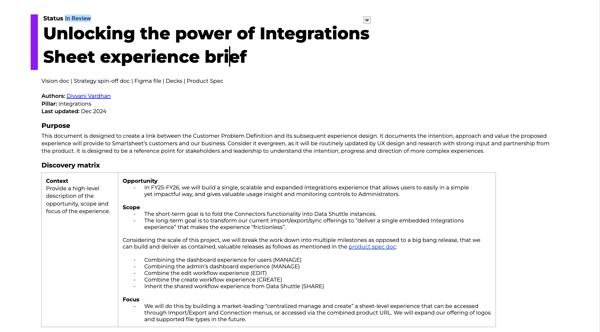 To build single, scalable and expanded Integrations experience that allows users to easily import, export and sync data into Smartsheet in a simple yet impactful way, and gives valuable usage insight and monitoring controls to Administrators.